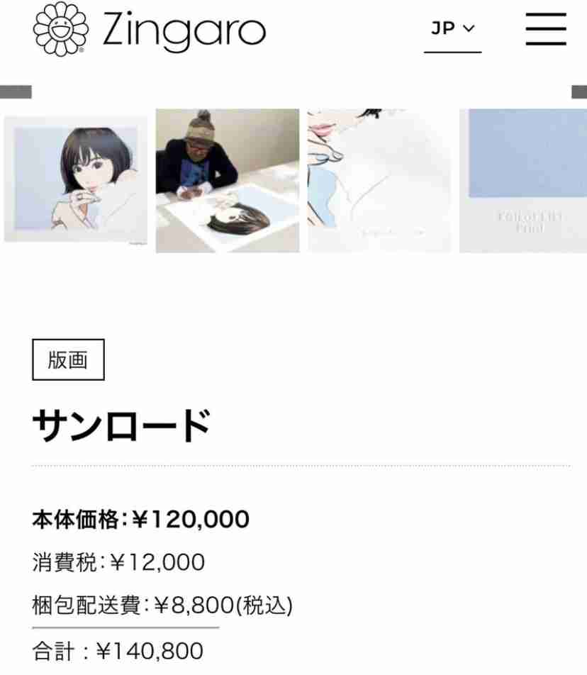 江口寿史さんは2022年、2023年、2025年に村上隆さんとコラボしており、該当作品は2023年に版画になり14万円で販売されています。