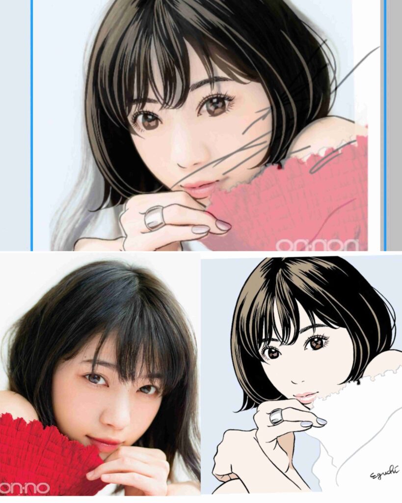 このイラストのオリジナルは、2017年のnon・noに掲載された西野七瀬さんです。
